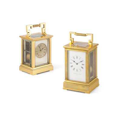 TWO FRENCH GILT BRASS REPEATING CARRIAGE CLOCKS
