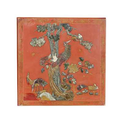 CHINESE RED LACQUER AND HARDSTONE MOUNTED LOW TABLE