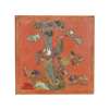 the square top inlaid with hardstones depicting pheasants and other birds amongst branches and flowers, within a geometric gilt painted border, on four short shaped legs
