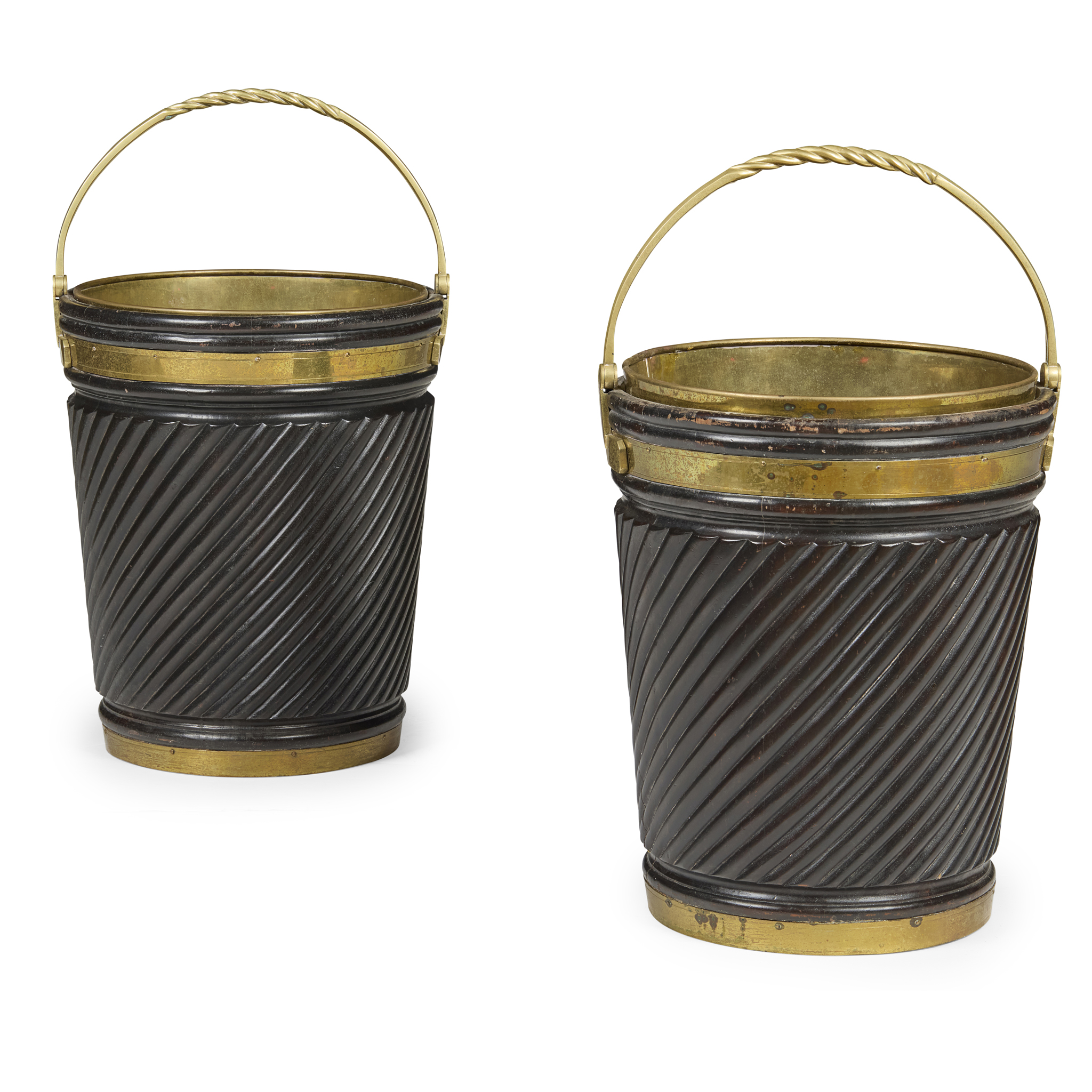 PAIR OF GEORGIAN IRISH STYLE MAHOGANY AND BRASS PEAT BUCKETS
