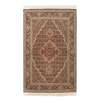 the indigo field with brown medallion, olive and brown spandrels, within dark indigo border