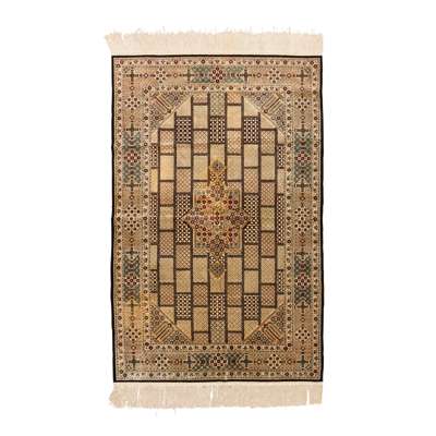 the cream field with light brown medallion, similar spandrels, within light brown and blue border