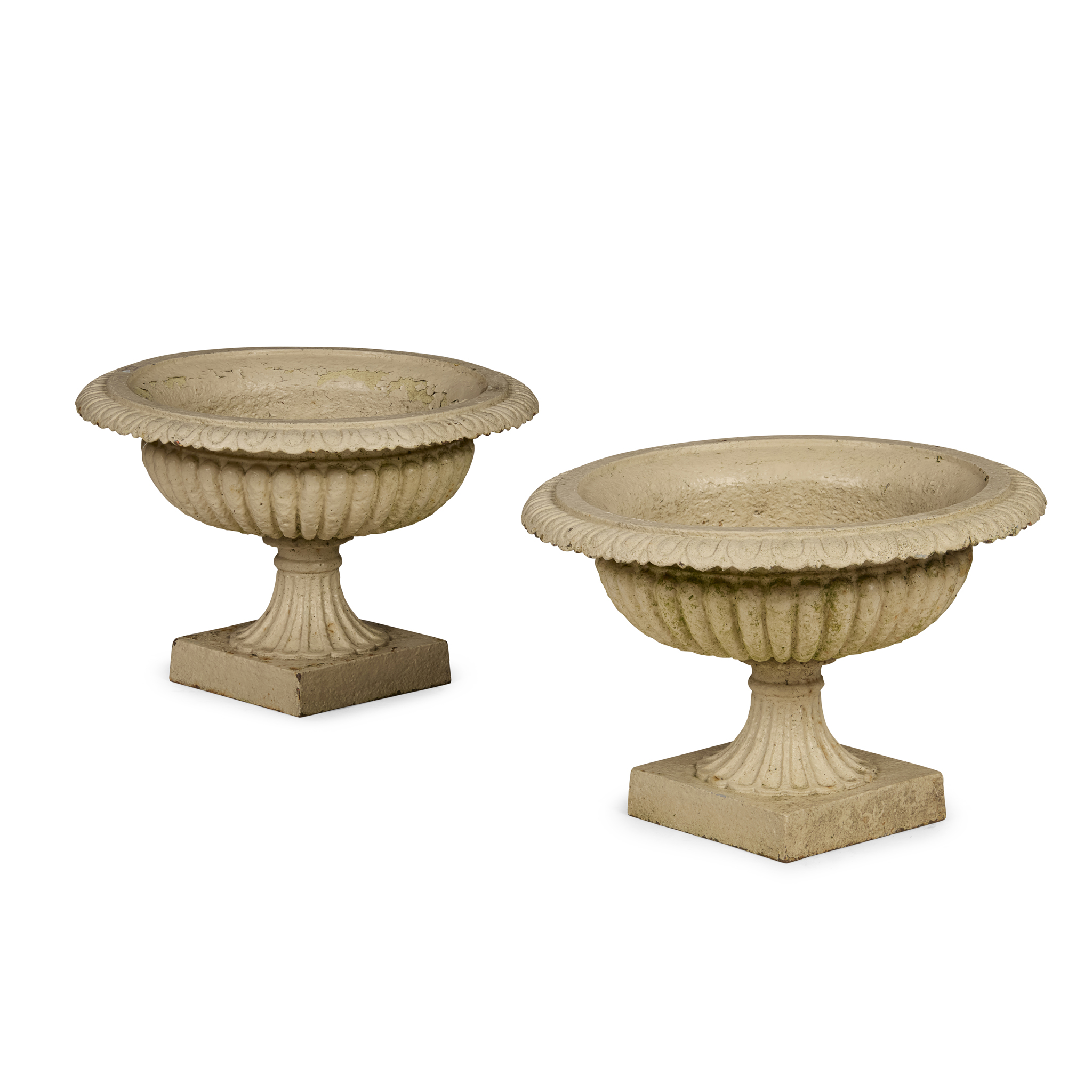 of low campana form with everted rims and lobed bodies, on square bases (2)