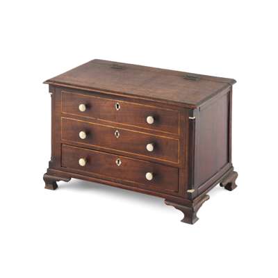 GEORGE III JEWELLERY BOX, IN THE FORM OF A MINIATURE 'LANCASHIRE' CHEST