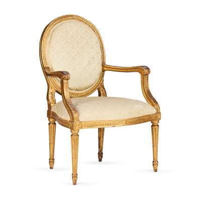 GEORGE III GILTWOOD OPEN ARMCHAIR