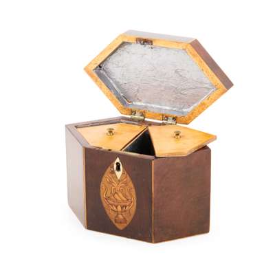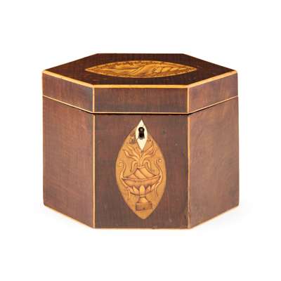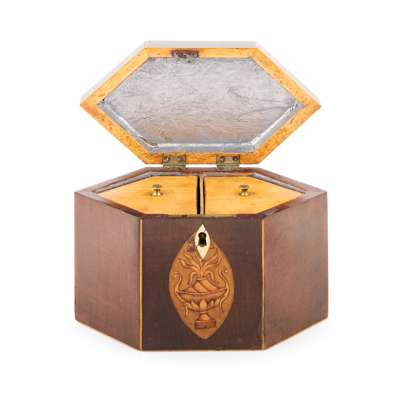 GEORGE III HEXAGONAL MAHOGANY TEA CADDY