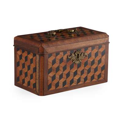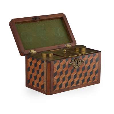GEORGE III WALNUT AND PARQUETRY TEA CADDY