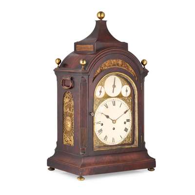 GEORGE III MAHOGANY MUSICAL TABLE CLOCK