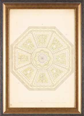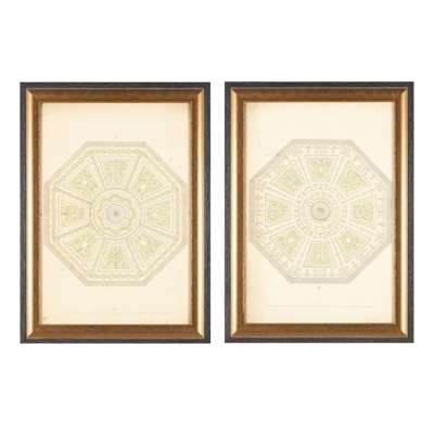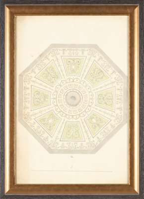 both pencil scale drawings on paper of octagonal Neoclassical ceiling designs, heightened in watercolour, with scales to the bottom edge, both framed (2)