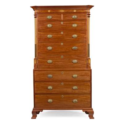 GEORGE III MAHOGANY INLAID CHEST-ON-CHEST, PROBABLY CHANNEL ISLANDS