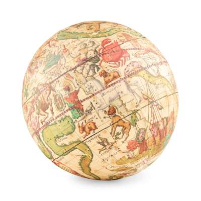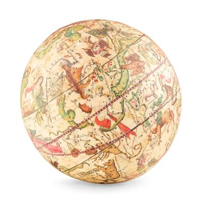 with twelve hand-coloured engraved gores and two polar calottes, the constellations depicted by mythical beasts and figures with stars shown to six orders of magnitude; inscribed Globus Coeleftis in quo omnes Afterismi accurate delineati cura et impenfis Matthaei Seutteri Chalcogr:Auguft