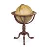 with twelve gores, meridian and brass horizon rings, with two cartouches, the first inscribed ‘THE CELESTIAL GLOBE On which the True Face of the Heavens is delineated & the Constellations containing upwards of 2000 Stars more than are on any former Globes, are laid down from the most recent & Accurate Observations of Astronomers and Adjusted to the Year 1740, by Jo.N SENEX F.R.S. New Made & Sold with Several New Improvements by BENJ: MARTIN only, in Fleet Street London 1757’; the second in Latin and dated 1740; on a baluster turned mahogany stand with cabriole legs ending in pointed pad feet