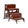with a caned back and seat beneath a spiral carved top rail, flanked by reeded scrolling arms, opening to a set of carpet lined steps, raised on square legs with brass caps and castors