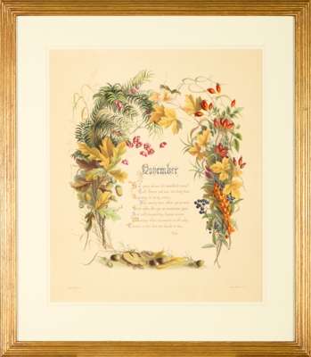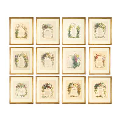 each print with a poem dedicated to the specific flower, printed by M. & D Hanhart, mounted in modern frames (12)