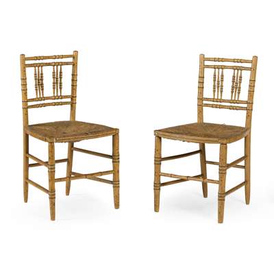 PAIR OF REGENCY SIMULATED BAMBOO CHAIRS
