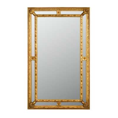 the rectangular mirror plate enclosed by margin plates in a bead and reel and leaf tip moulded frame marked with flowerheads