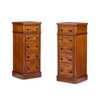 the tops with rounded corners and moulded edges above six drawers with turned knobs, on plinth bases (2)