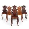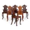 with carved shield backs, above bow front solid seats and raised on carved square cabriole legs with scroll feet (6)