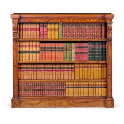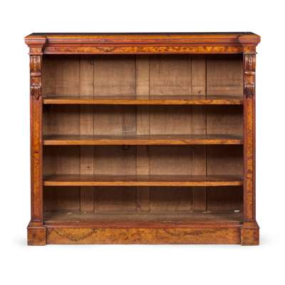VICTORIAN BURR WALNUT OPEN BOOKCASE