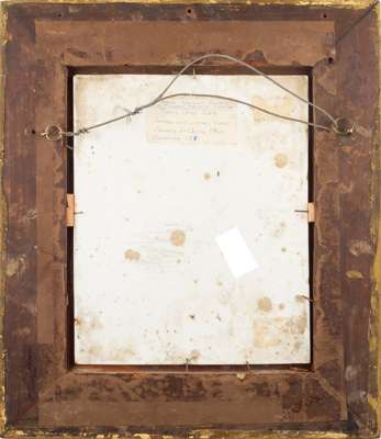 FRAMED PAINTED PORCELAIN PLAQUE, 'THE COTTAGE DOOR', AFTER THOMAS GAINSBOROUGH