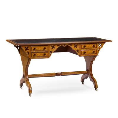 PAIR OF SCANDINAVIAN BIRD'S EYE MAPLE REFORMED GOTHIC LIBRARY TABLES