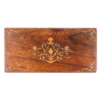 VICTORIAN ROSEWOOD AND MARQUETRY STATIONERY BOX Y