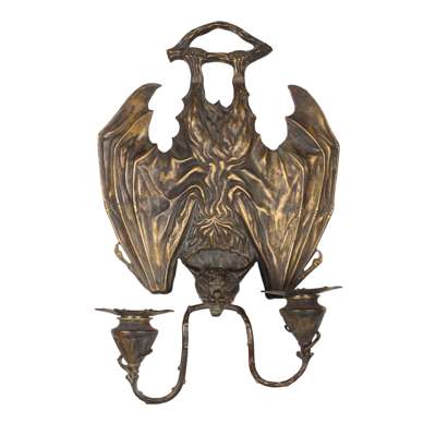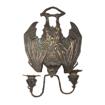 modelled as hanging bats in dark patinated metal, with a pair of candle branches issuing from their mouths, stamped to the reverse K S I A and RD. 156710 (2)