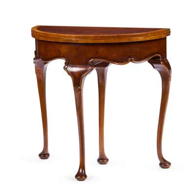 GEORGE II STYLE WALNUT AND SATIN BIRCH CARD TABLE