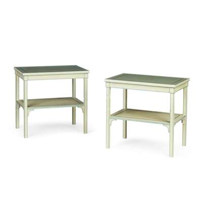 PAIR OF GREEN PAINTED SIDE TABLES, BY COLEFAX & FOWLER