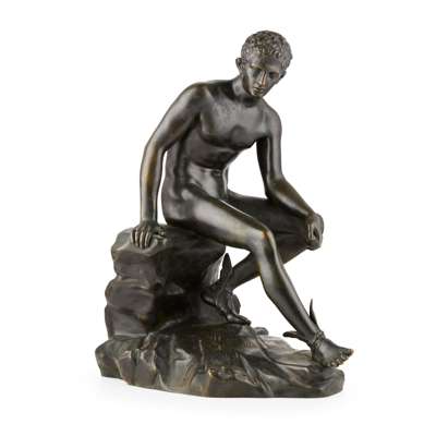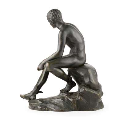 FRENCH BRONZE FIGURE OF THE SEATED HERMES, AFTER THE ANTIQUE