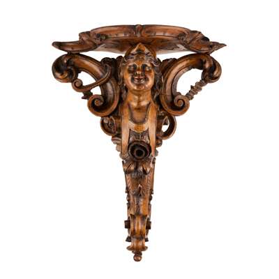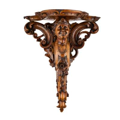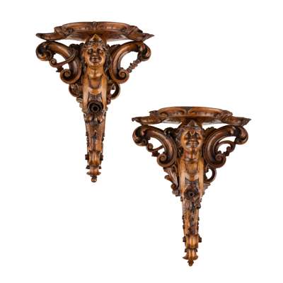 PAIR OF CARVED WALNUT WALL BRACKETS