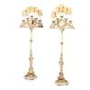 with five scrolling candlearms flanking a central oval mirror, the supports moulded in the form of pricket candlesticks, on stepped bases, fitted for electricity (2)