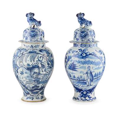 TWO SIMILAR DELFT VASES