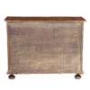the banded serpentine top with scroll inlay, above four long serpentine crossbanded drawers, raised on bun feet