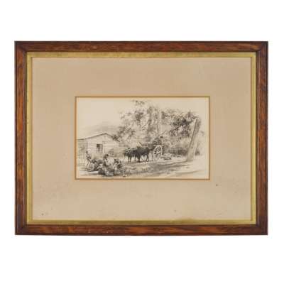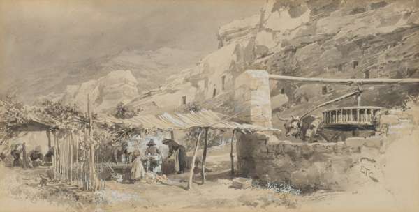 Signed with initials, gouache and another by the same hand ‘Washing outside the walls, Almeria’ (2)