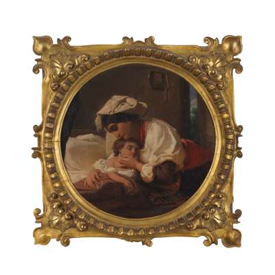Signed, oil on canvas, tondo