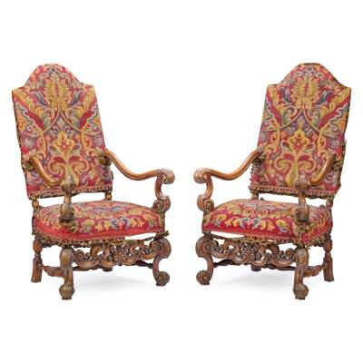 PAIR OF LOUIS XIV STYLE WALNUT ARMCHAIRS