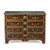 LOUIS XIV EBONY, EBONISED FRUITWOOD, AND IVORY MARQUETRY AND ORMOLU MOUNTED COMMODE, POSSIBLY BY AUBERTIN GAUDRON Y