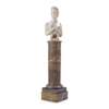 on a turned socle and square base; on a grey marble columnar pedestal with a square plinth and painted wood base