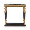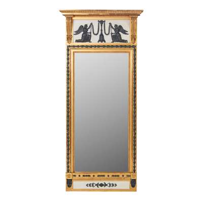 SWEDISH NEOCLASSICAL EBONISED AND PARCEL-GILT MARBLE TOP CONSOLE TABLE AND MIRROR