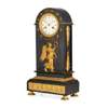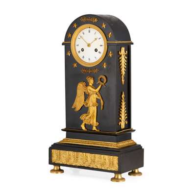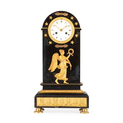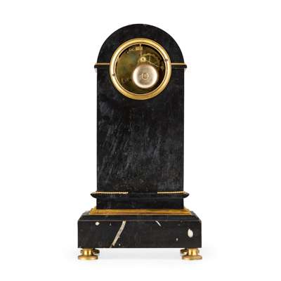 FRENCH EMPIRE GILT METAL MOUNTED BLACK MARBLE MANTEL CLOCK