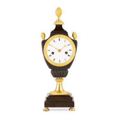 FRENCH DIRECTOIRE PERIOD GILT AND PATINATED BRONZE MANTEL CLOCK