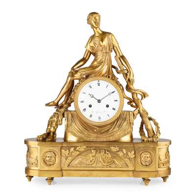 FRENCH EMPIRE GILT BRONZE FIGURAL MANTEL CLOCK, HENRY LARESCHE, PARIS