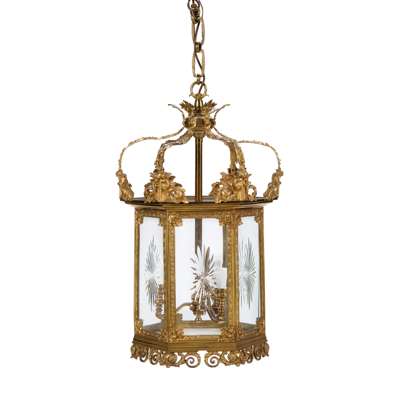 FRENCH GILT BRONZE HEXAGONAL HALL LANTERN