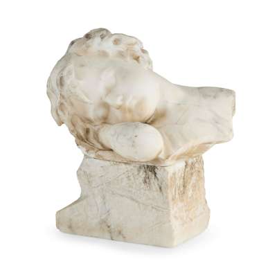 ENGLISH SCHOOL, WHITE MARBLE BUST OF A SLEEPING BOY
