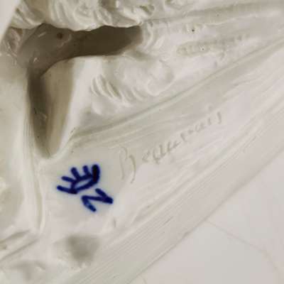 LARGE CAPODIMONTE BLANC DE CHINE FIGURE GROUP, SIGNED BEAUVAIS