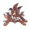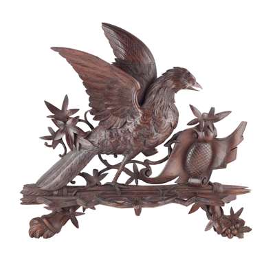 pierced and carved depicting a bird clutching a cartouche, standing on a quiver of arrows, with a hinged music support