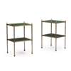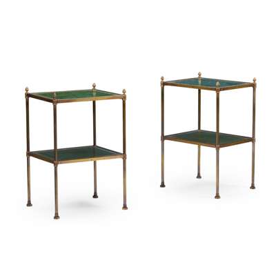PAIR OF FRENCH BRASS AND LEATHER ETAGERE TABLES