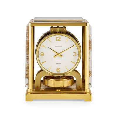SWISS GILT METAL AND LUCITE 'MARINA' ATMOS MANTEL CLOCK, JAEGER-LECOULTRE, GENEVA