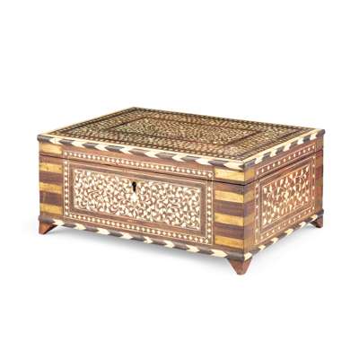 ANGLO-INDIAN TEAK, BRASS, AND IVORY BOX Y